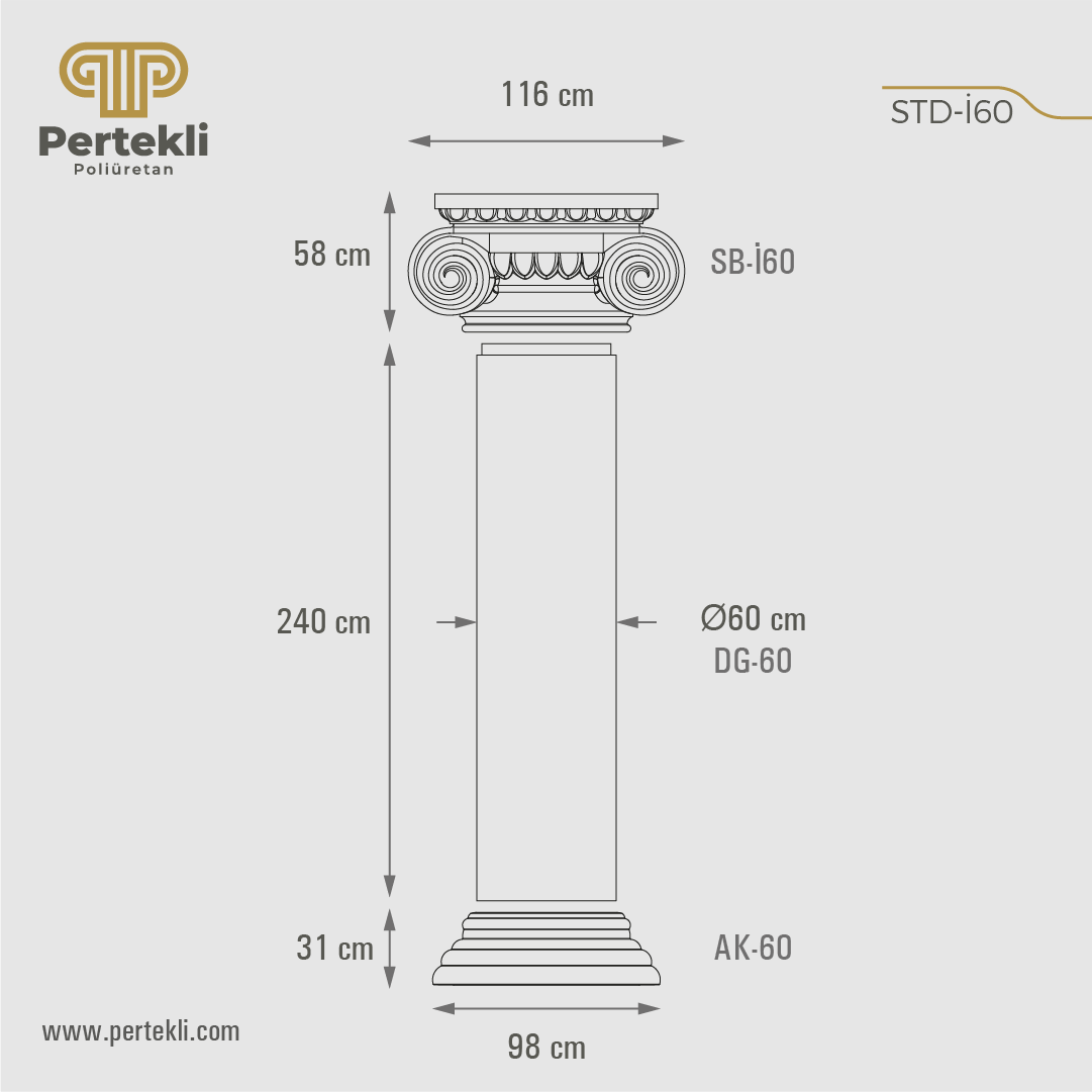 Poliüretan yivli sütun, klasik mimarinin estetik anlayışını modern malzeme teknolojisiyle buluşturan dekoratif bir yapı elemanıdır. Kökeni, Antik Yunan ve Roma mimarisinde sıkça rastlanan yivli (kanallı) sütun formlarına dayanır. Günümüzde ise hem iç hem de dış mekân dekorasyonunda şıklık ve zarafet katmak amacıyla tercih edilmektedir. Yüksek yoğunluklu poliüretan hammaddeden üretilen bu sütunlar, hafif olmalarına rağmen son derece dayanıklıdır. Gövdesindeki dikey kanallar (yivler), tasarıma klasik ve estetik bir görünüm kazandırır. Beton ya da mermer sütunlara kıyasla çok daha hafif olması, taşıma ve montaj sürecini oldukça kolaylaştırır. Neme, darbelere ve çeşitli hava koşullarına karşı dirençli yapısı sayesinde çatlama ve deformasyon yapmaz. Yapıştırma ya da mekanik sabitleme yöntemleriyle hızlı ve pratik şekilde uygulanabilir. Ayrıca akrilik ve su bazlı boyalarla istenilen renge boyanarak mekânın dekorasyonuna uyum sağlayacak şekilde kişiselleştirilebilir.